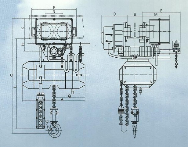 電機:葫蘆采用高起動轉矩圓柱子電機;小車采用盤式制動電機,防護等級IP54,負載持續率高,詳見技術參數表。